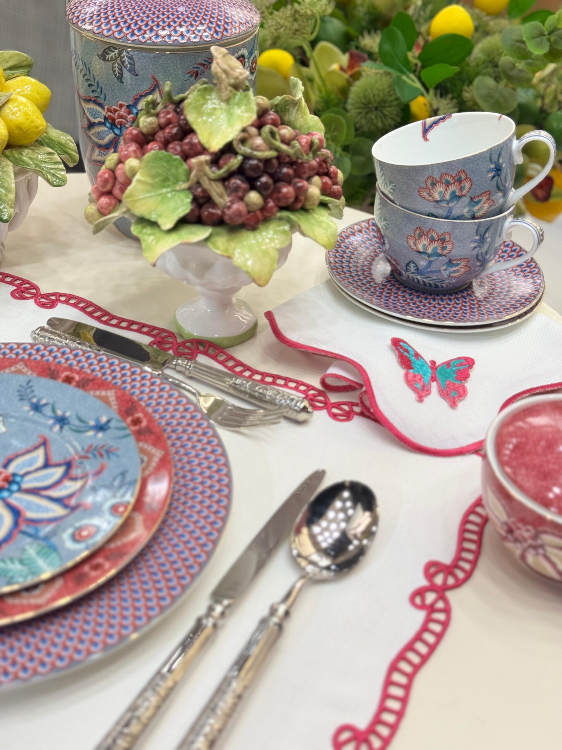 Sofralarda düzeni ve zarafeti bir araya getiren Gardenya kumaş Amerikan servis, özel kıvrımlı formu ve dikkat çekici pembe-kırmızı renk uyumuyla hem klasik hem de çağdaş masa düzenlerine hitap eder. %65 pamuk %35 polyester karışımlı kumaşı sayesinde leke tutmaz ve kolay temizlenir.